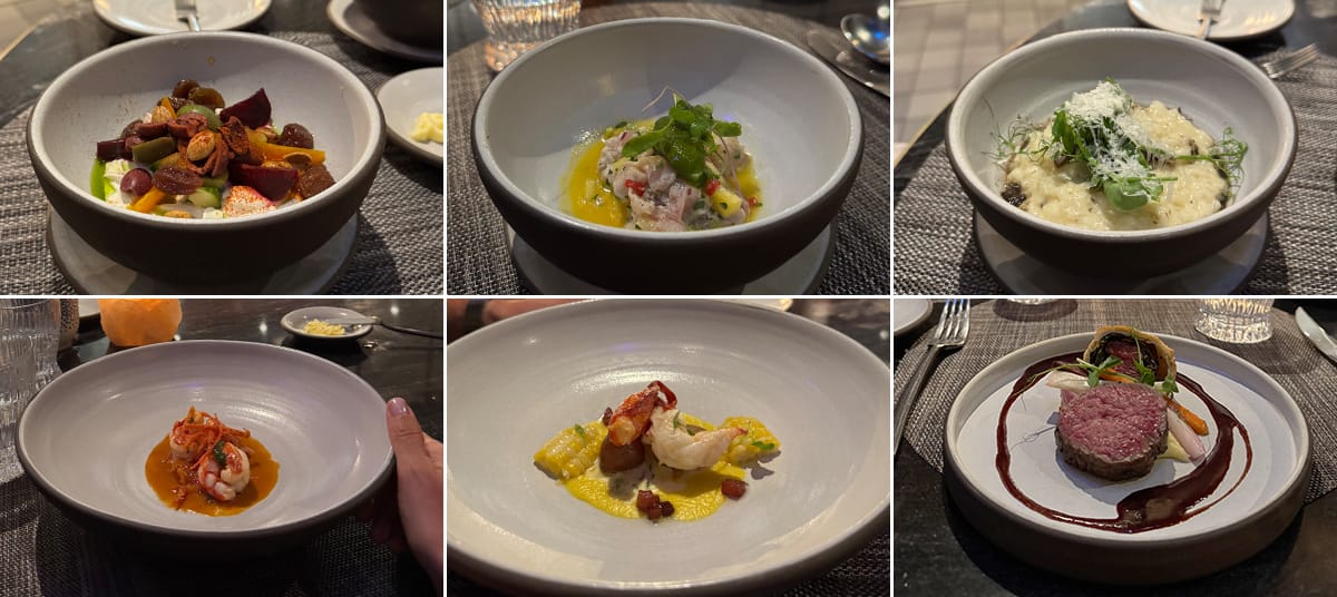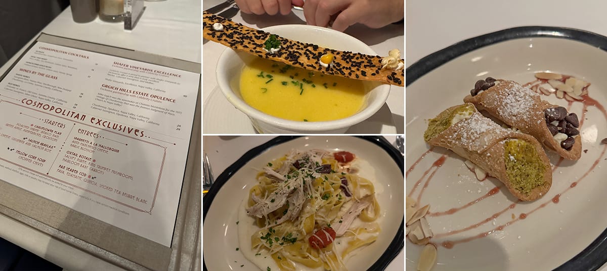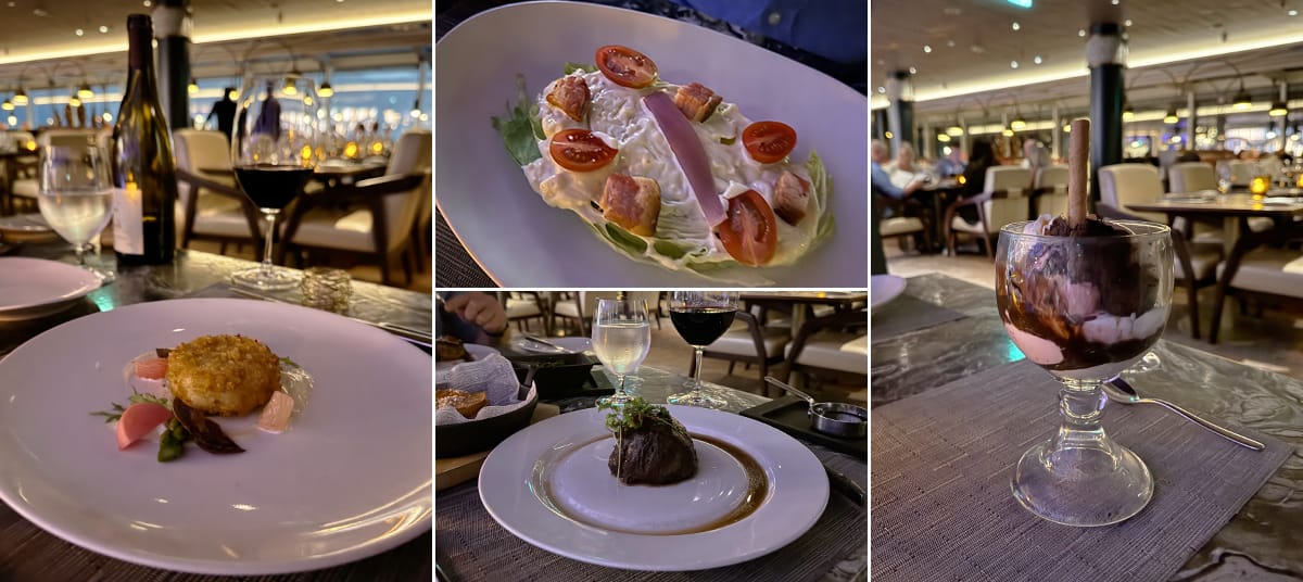 During this cruise, I had dinner at all of the specialty restaurants except Chef’s Table. Below, I’m sharing my experience with each venue, focusing on the food, the level of service, and the overall restaurant design.