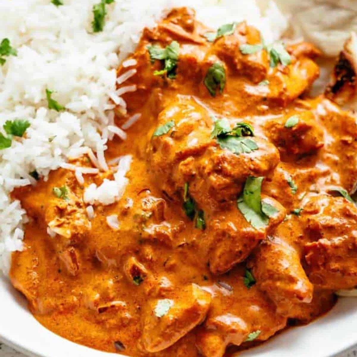Gewürztraminer pairs well with chicken tikka masala. A touch of sweetness softens spices and tomato acidity, while aromatic notes work with garlic, ginger, and masala. The wine feels round and calm next to the creamy sauce.