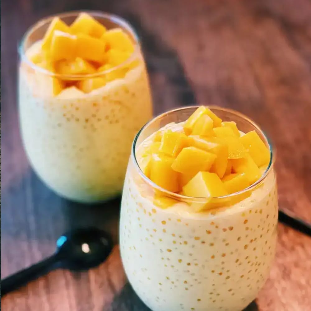 Moscato d’Asti pairs well with creamy mango sago. Light sweetness matches ripe mango, while low alcohol and gentle bubbles keep the dessert fresh and not heavy. The wine does not overpower the soft texture.