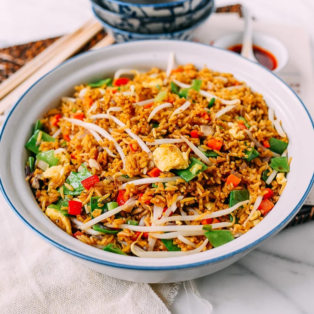 Grüner Veltliner pairs well with vegetable fried rice. Fresh acidity cuts through oil and egg, while a clean, dry profile works with soy sauce and vegetables.