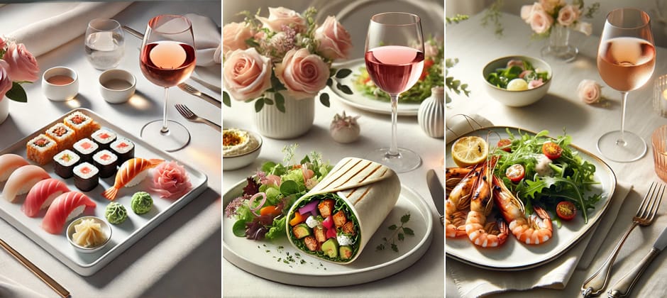 Roé wine generally has delicate aromas and fruit flavors (strawberry, raspberry, cherry, watermelon, etc.), so it pairs wonderfully with various dishes.