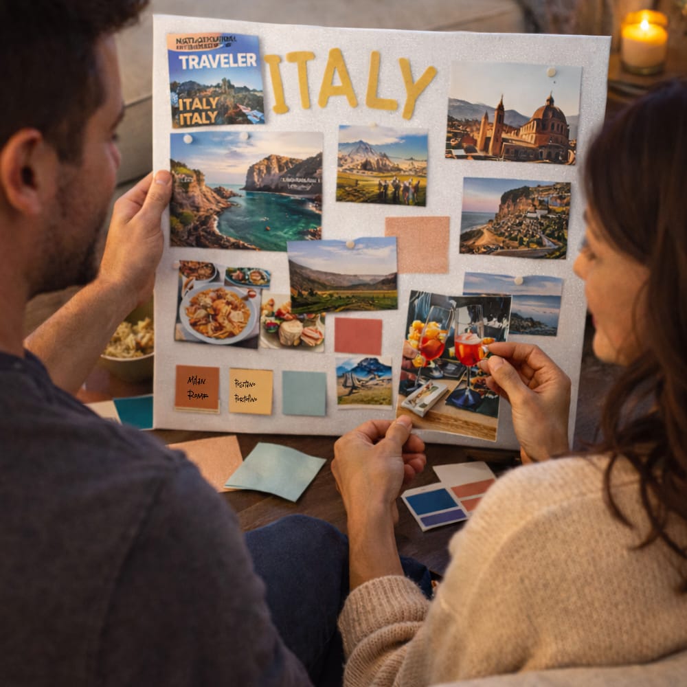 Choose destination, and build a mood board together. It can be a future trip, a place you both loved, or somewhere you’ve never been but often talk about.