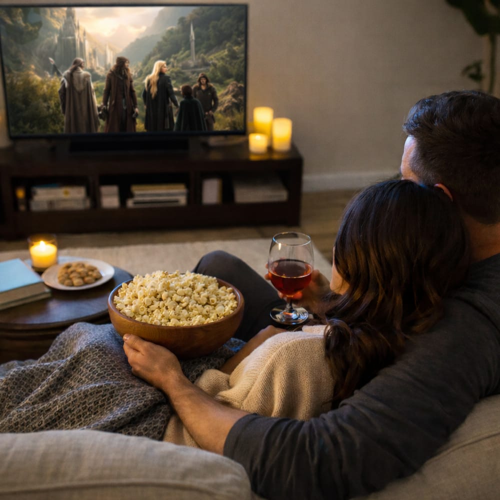 This works best with films that feel comforting or meaningful to you as a couple. Movies you’ve seen before, or talked about. Add simple snacks, and your favourite drinks.