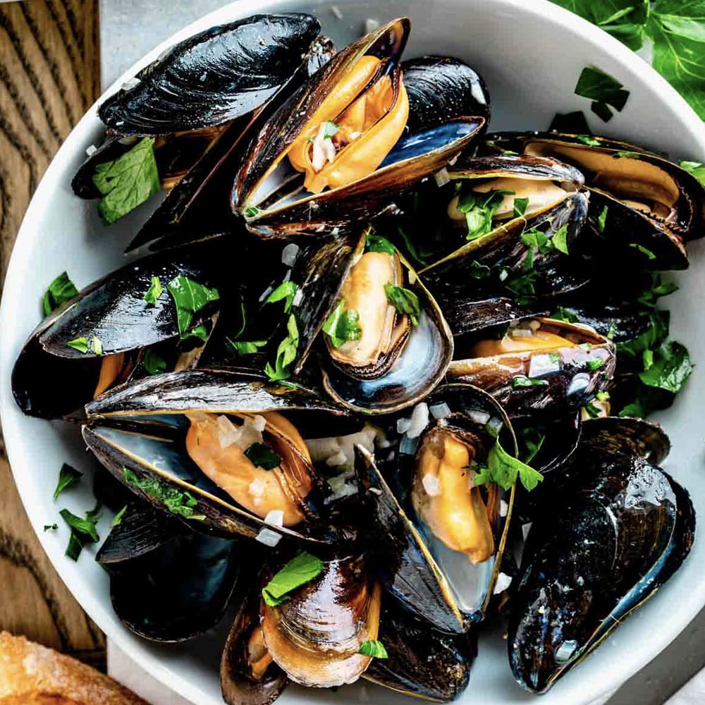 Mussels – Briny, savory, and slightly earthy. Classic with crisp, citrusy wines like Sauvignon Blanc or Vermentino.