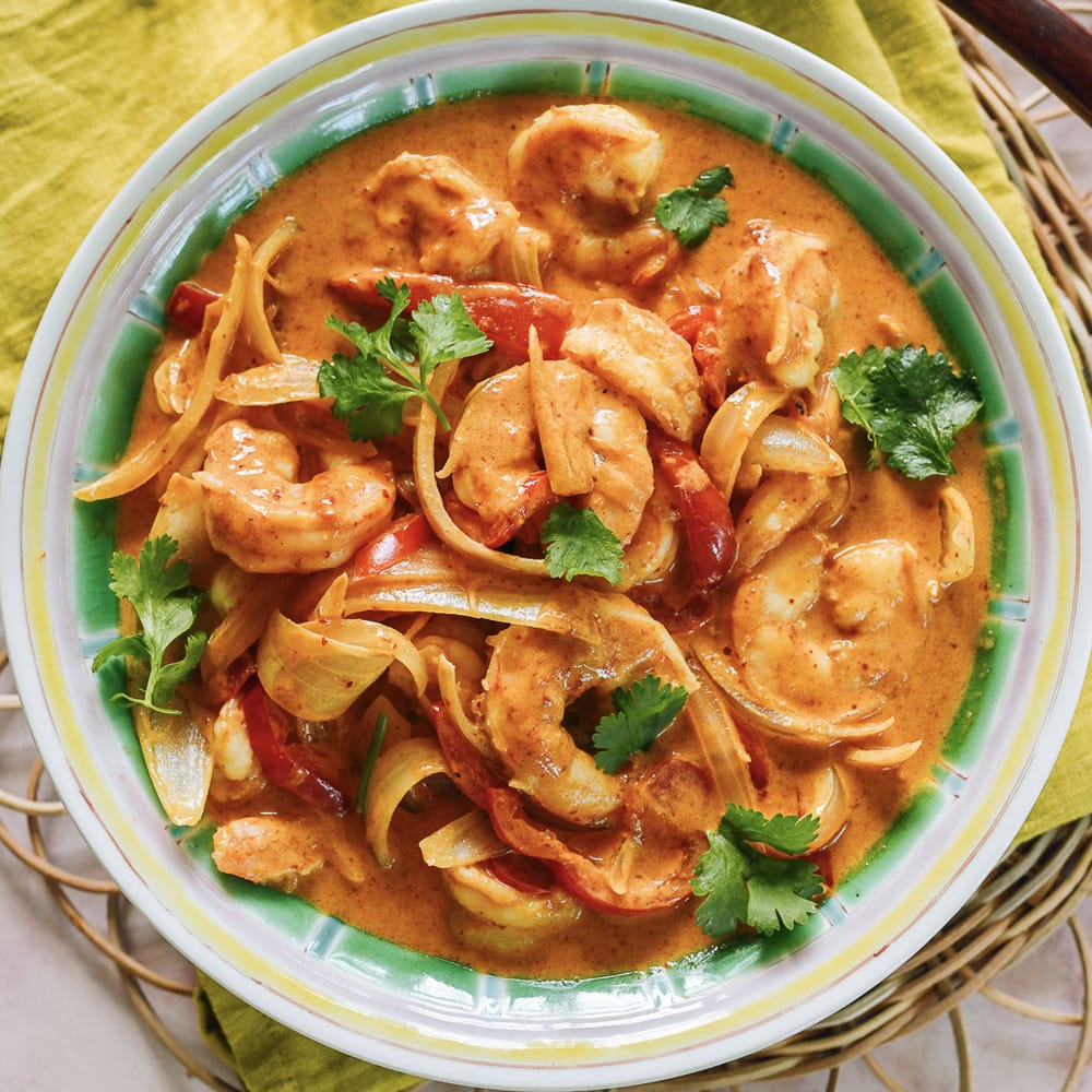 Aromatic, slightly off-dry wines work best with spicy, coconut-based seafood dishes. They tame heat, enhance exotic flavors, and balance creaminess.