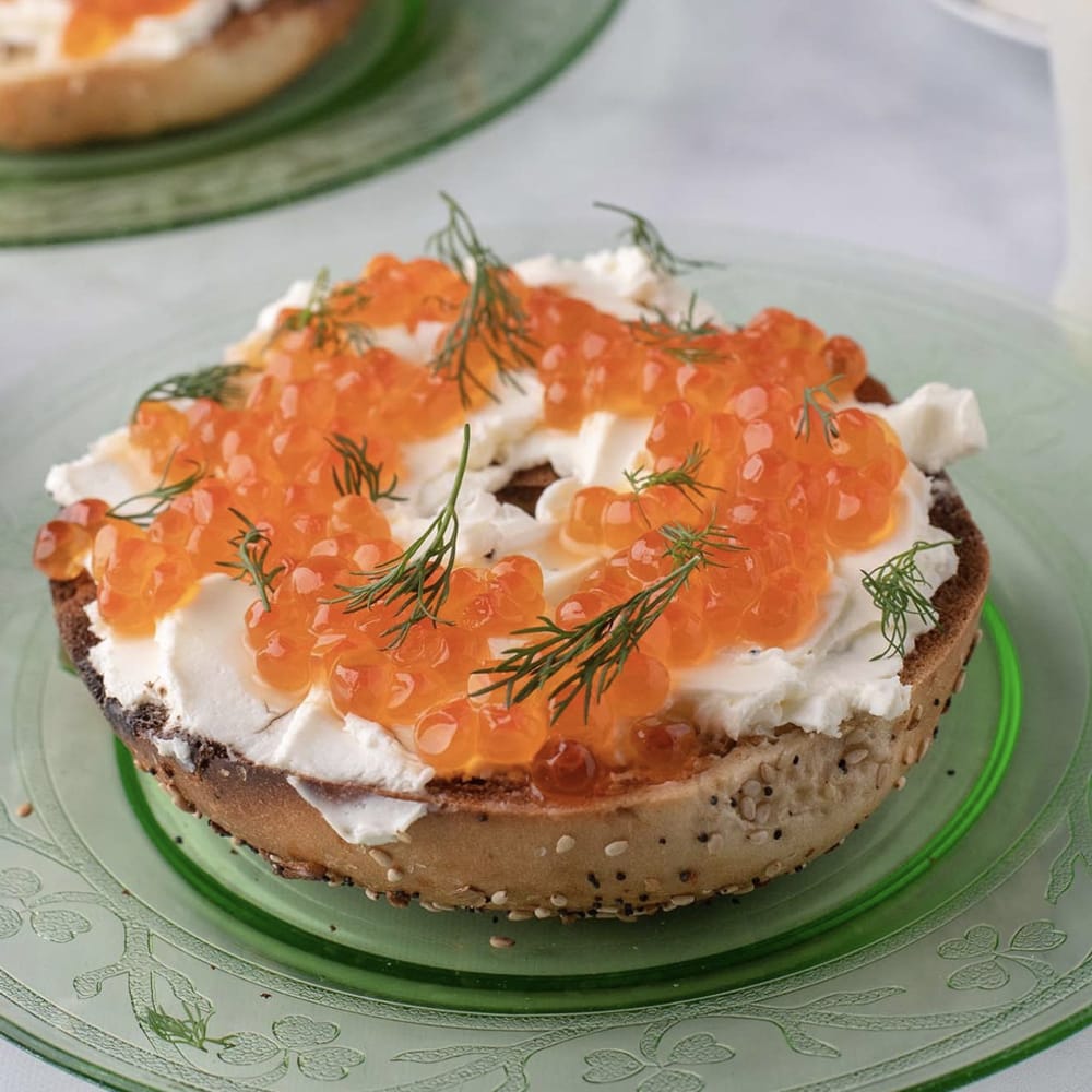 Champagne Brut Rosé + Bagel with Cream Cheese and Salmon Roe